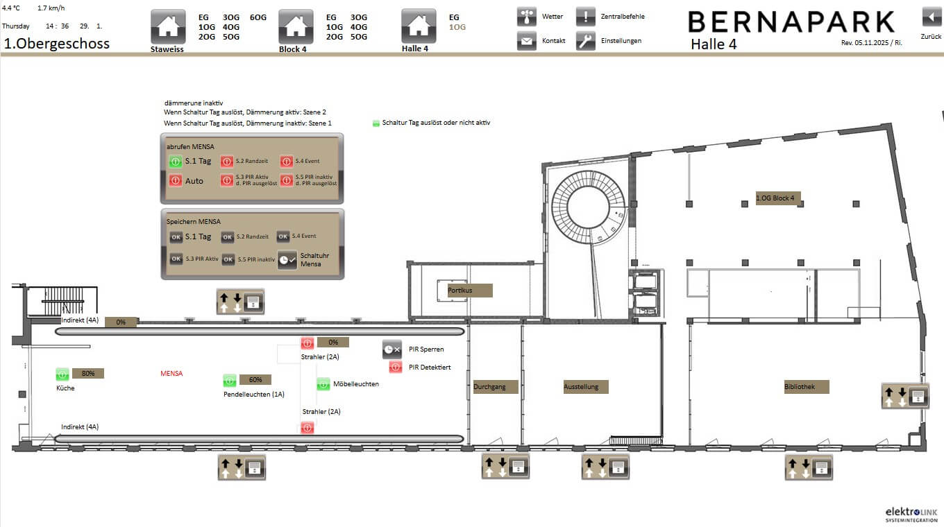 - KNX-basiertes Gebäudeautomationssystem in der Halle 4 Stawis und Block 3